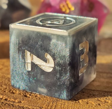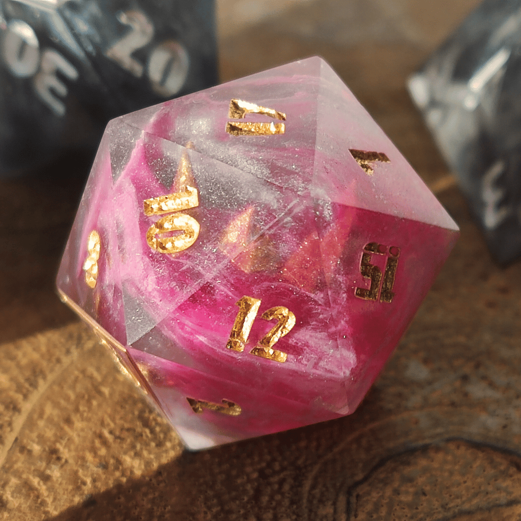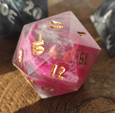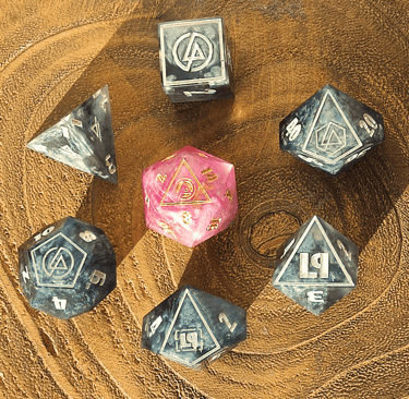 Toutes les grandes faces sont remplacées par les logos des pochettes d'album Linkin Park de différentes époques. Le dé 20 contient en plus une incrustation de la couronne de Faker, visible dans la vidéo de la musique des worlds de League of Legends de 2023. Musique interpretée par Linkin Park. Le D20 est différents des autres dés car il est rose au lieu de gris.