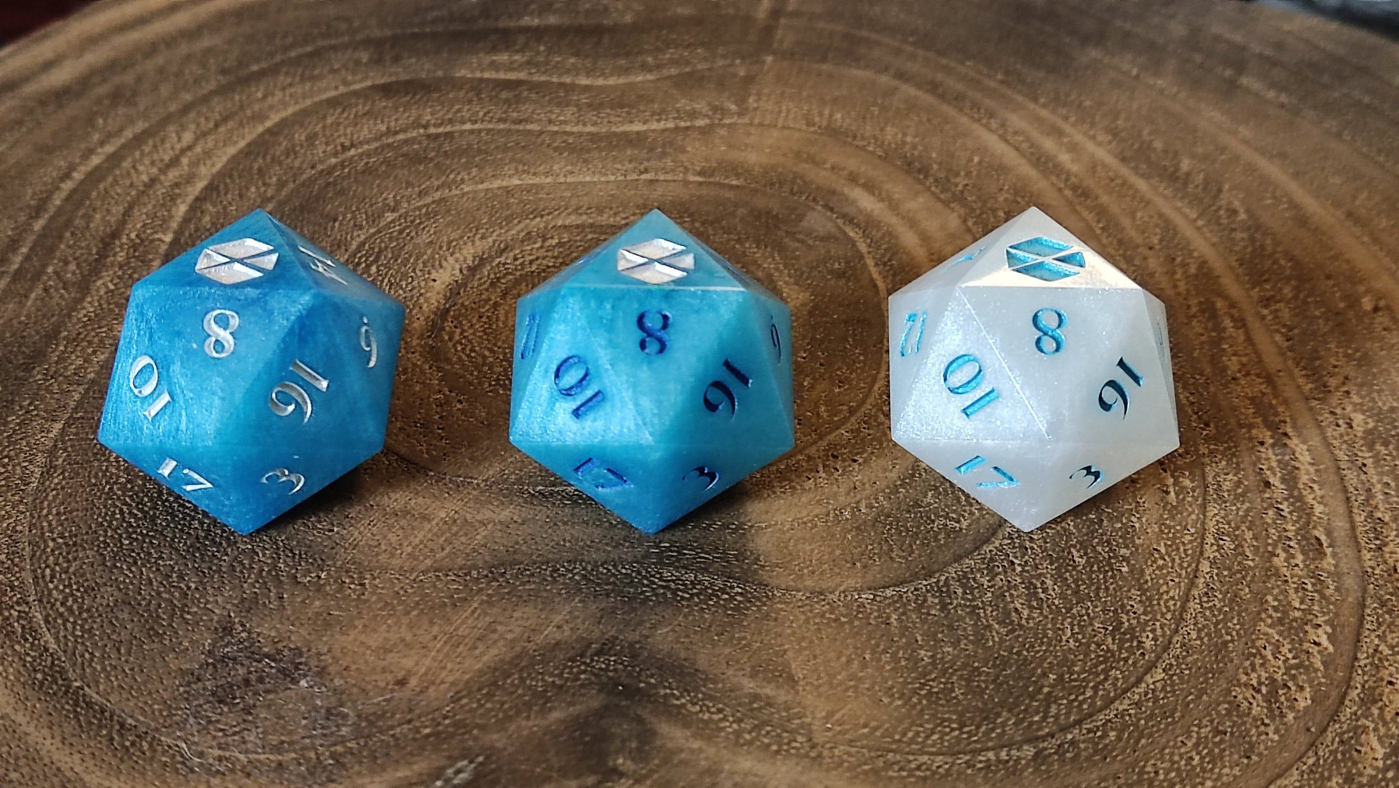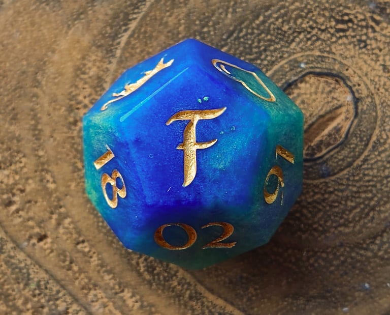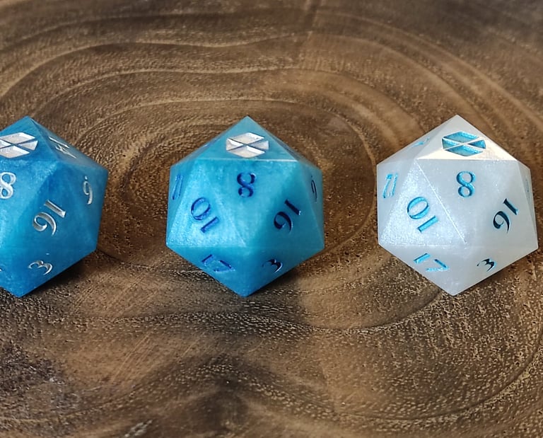 Nous réalisons des D4 / D6 / D8 / D10 / D% (D100) / D12 / D20 et toute autre forme que vous pourriez imaginer, étant donné qu'on réalise tout à la main sur-mesure !